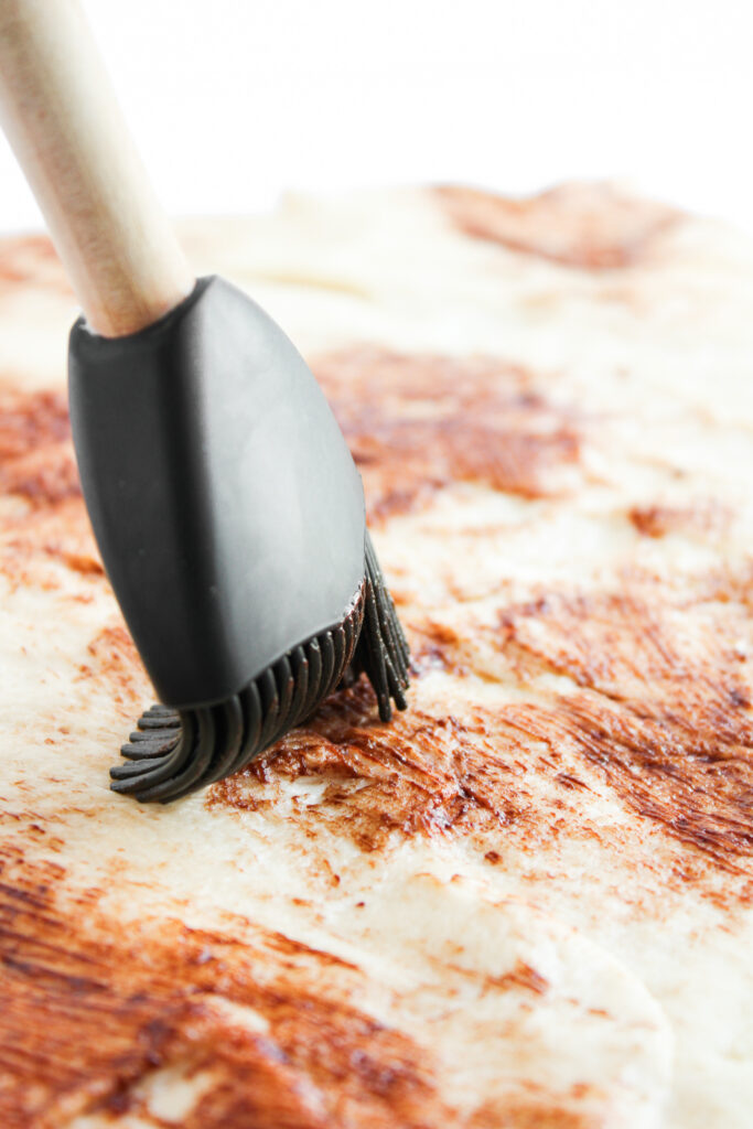 - In a small bowl, stir cocoa powder into melted butter. Lightly brush over the dough, leaving some areas uncoated to create a “worn bandage” effect.
